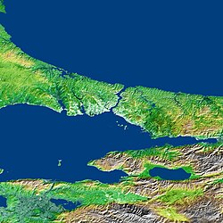 Boğaz'ın batı tarafı Çatalca Yarımadası, doğu tarafı Kocaeli Yarımadası