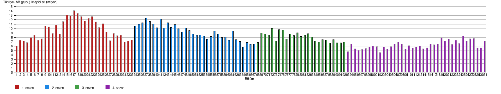 Çukur : Türkiye (AB grubu) bölüm başı izleyicileri (milyon)