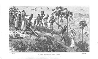 Arap köleciler, esirlerini Tanzanya ve Mozambik'te bulunan Ruvuma ırmağı boyunca yürütüyor.