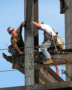 Massachusetts Genel Hastanesi'nin bina inşaatı işiyle uğraşan iki inşaat işçisi