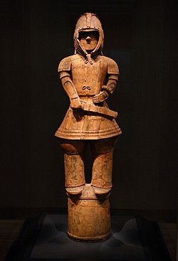 Her biri belirli bir uygarlığı temsil eden ünlü Antik sanat eserleri. Soldan sağa: Ur Standardı (Sümer), Tutankhamun Maskesi (Mısır), Rahip Kral (Harappan), Milo Venüsü (Yunan), Eşlerin Lahdi (Etrüsk), Prima Portalı Augustus (Roma), Terracotta Ordusu'ndan bir asker (Çinli), Keiko Zırhlı Savaşçı (Japon) ve bir devasa kafa (Olmec).