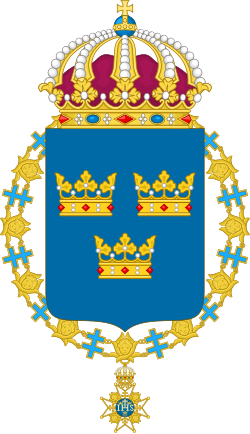![]() Üç kraliyet tacı | ![]() Bjelbo Hanedanı simgesi | ![]() Bernadotte Hanedanı simgesi | |||||||||||||||||||