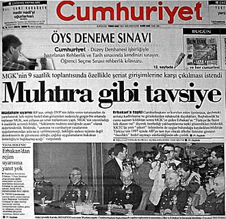 ![]() 1 Mart 1997 tarihli Cumhuriyet gazetesinin manşeti | |