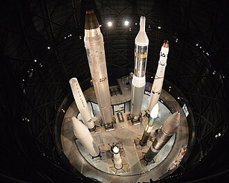 Amerika Birleşik Devletleri Hava Kuvvetleri Ulusal Müzesi'nde bulunan çeşitli Amerikan nükleer kıtalararası balistik füzeleri. Sol üstten saat yönünde: PGM-17 Thor, LGM-25C Titan II, HGM-25A Titan I, Thor-Agena, LGM-30G Minuteman III, LGM-118 Peacekeeper, LGM-30A/B/F Minuteman I veya II, PGM -19 Jüpiter
