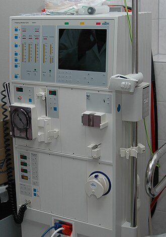 Böbreklerin işlevini yerine getirmek için kullanılan bir hemodiyaliz makinesi