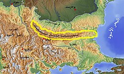 Balkan sıradağları 600 kilometre uzunluğunda olup, Balkan Yarımadası'nın kuzey kenarında doğu-batı yönünde aşağı Tuna Nehri'nin düzlemlerine doğru ilerlemektedir. Sıradağ Trakya arazisinin doğal kuzey sınırını teşkil etmektedir. Yuvarlatılmış dağlık görünümü ile bu sıradağ güneye doğru dik olarak alçalır ve birçok geçitlere sahiptir, bu geçitlerden en önemli olanları Şipka Geçiti ile Devlet (Republik) Geçiti'dir. Ayrıca birçok yarma vadiler tarafından kesilir, bu vadilerden en kayda değer olanı Iskar Vadisi'dir. En yüksek tepesi 2376 metredir.