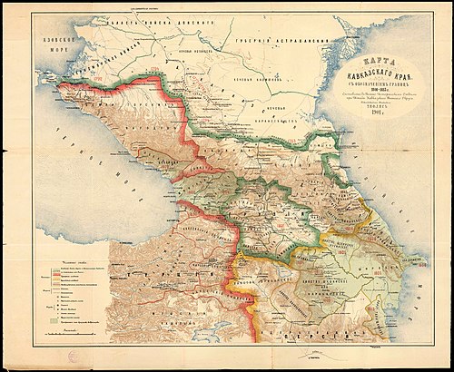 1801'de Kafkasya. Rusça bu haritada günümüz Azerbaycan toprakları Şirvan olarak adlandırılırken bu topraklar günümüz Ermenistan ve Güney Azerbaycan'ı da içine alarak Azerbaycan olarak adlandırılmıştır.