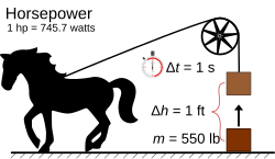 Watt, bir atın bir 12 fit yarıçaplı bir değirmen çarkını saatte 144 kez veya dakikada 2,4 kez çevirebildiği ve çarka uyguladığı kuvvetin 180 libre-kuvvet olduğunu öngörerek aşağıdaki hesabı yapmıştır.