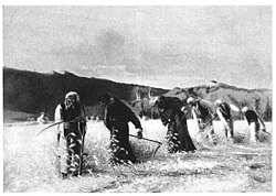 Bir tarlayı hasat eden bir grup Hırvat gösteren bir tablo