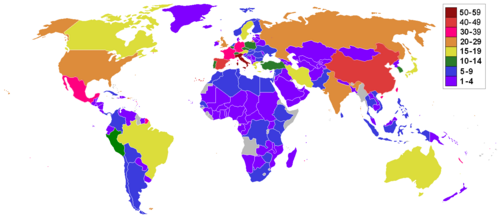 - Turuncu: 20 ila 29 mirası olan ülkeler