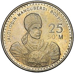 ![]() Manguberdi'nin 800. doğum yıldönümüne adanmış 25 somluk para. 1999 | |