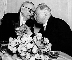 Finlandiya Cumhurbaşkanı J.K. Paasikivi ile Sovyetler Birliği'nin Yüksek Sovyet Başkanı K.E. Voroşilov. Bu ikili, uluslararası ilişkiler ve özellikle Soğuk Savaş döneminde Finlandiya-Sovyet ilişkileri bağlamında önemli bir diplomatik teması temsil eder.