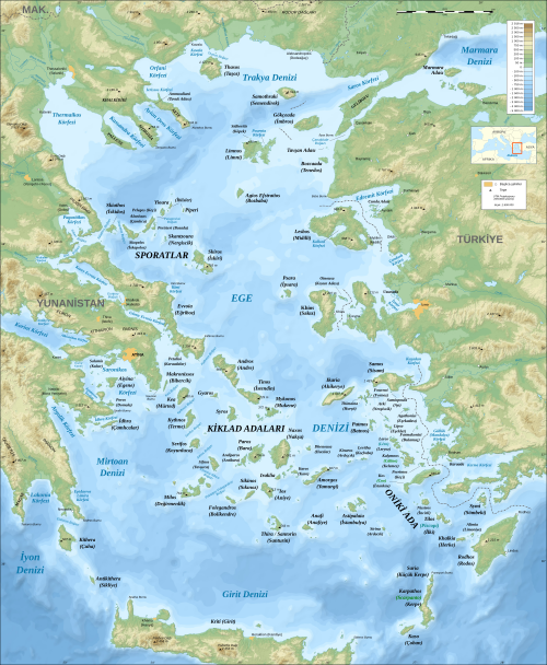 Yunanistan'ın Mora yarımadasının doğusunda bulunan Andıra, İstendil (Tinos), Sire, Mökene (Mikonos), Nakşa, Bara, Yamurgi, Santoron (Santorini), Anafi, Değirmenlik (Milos) ve Yavuzca (Sifnos) adalarına bu isim verilir.