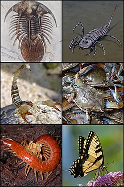 | Eklem bacaklılar Yaşadığı dönem aralığı: 540-0 myö Fanerozoyik-Günümüz PreЄ Є O S D C P T J K Pg N | |||||