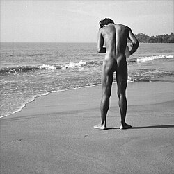 Plajda çıplak erkek