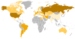 Dünyadaki Ermeni diasporasının haritası (Ermeni soyuna veya vatandaşlığına sahip kişileri içerir).
