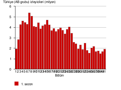 Gelsin Hayat Bildiği Gibi : Türkiye (AB grubu) bölüm başı izleyicileri (milyon)