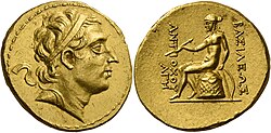 Kral Antiochus'a [Ἀντίoχoς Μέγας] ait Octodrahmi kategorisinde olan antik sikke. Sikke ön yüzde diademli kral Antiochus portresi. Sikke arka tip Apollon omphalos üzerinde oturuyor sağ elinde ok sol elinde yay çevresinde ΒΑΣΙΛΕΩΣ ΑΝΤΙΟΧΟΥ - BASILEOS ANTIOCHOU lejantı.