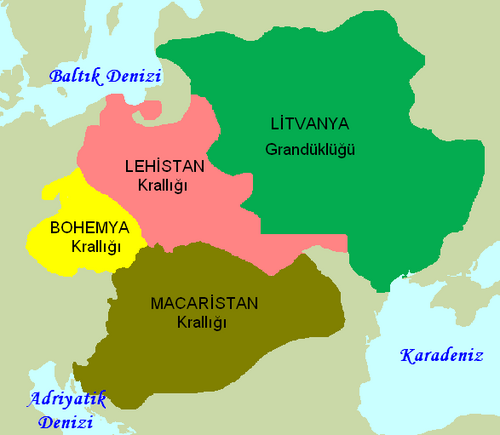 İsmi, kurucusu Gediminids Hanedanı mensubu Litvanya Grandükü Jagiełło'dan almıştır. Jagiełło 1386 yılında Hristiyanlığı kabul ederek II. Władysław adını aldı ve 11 yaşındaki Lehistan kraliçesi Jadwiga ile evlendi. Böylece Jagiellon Hanedanının üyeleri hem Litvanya'nın, hem de Lehistan'ın hükümdarı oldular. Ancak iki ülke kralları aynı olmasına rağmen hemen birleşmediler. Ancak 1569 yılında Jagiellon Hanedanının son kralı II. Zygmunt August'un çocuksuz olarak ölmesi üzerine iki devletin magnatları (soylular) Polonya'nın Lublin kentinde bir araya gelerek 1 Temmuz 1569 tarihinde Lublin Antlaşmasını imzaladılar ve iki devleti bir araya getirdiler. Böylece Lehistan-Litvanya Birliği kurulmuş oldu. Bu tarihten sonra 1795 yılında parçalanmasına kadar Lehistan ve Litvanya tek kral, tek meclis (Sejm) ve tek senato tarafından yönetildi.