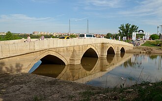 1553-54 yılında Kanuni Sultan Süleyman tarafından Edirne'de Mimar Sinan'a yaptırıldı. Edirne Sarayiçi'nde Tunca Nehri'nin bir kolu üzerindedir, şehir merkezi ile Saray'ın Hasbahçesi'ni birbirine bağlar. Karayolları Genel Müdürlüğü'ne bağlı olan yapının uzunluğu 60 metre genişliği 4,5 metredir. Kesme taştan 4 gözlü olarak inşa edildi.