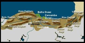Türkiye'nin kuzeyinde, Sakarya'nın doğusundan Gürcistan'a kadar Karadeniz'e paralel olarak bir şerit gibi uzanır.