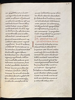 Mevcut el yazmalarının çoğunda, en eskileri de dahil olmak üzere, belge Constitutum domini Constantini imperatoris başlığını taşımaktadır. Konstantin'in Bağışı, 9. yüzyıl Sahte İsidore Kararnameleri'ne dahil edilmiştir. İtalyan Katolik rahip ve Rönesans hümanisti Lorenzo Valla, 1439-1440 yıllarında sağlam filolojik argümanlarla sahteciliği ilk ortaya çıkaran kişi olarak kabul edilir, ancak belgenin gerçekliği 1001'den beri tekrar tekrar tartışılmıştır.
