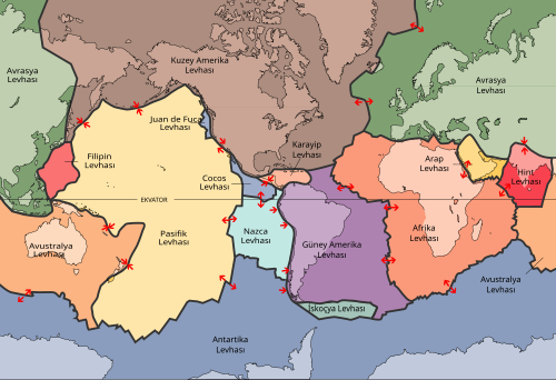 Gezegenin en sert dış kabuğu olan Dünya'nın litosferi (kabuk ve üst manto), nasıl tanımlandıklarına bağlı olarak yedi veya sekiz ana levhaya ve birçok küçük plakaya bölünmüştür. Plakaların buluştuğu yerde, onların göreli hareketi plaka sınırı tipini belirler: yakınsak, ıraksak veya transform. Depremler, volkanik aktivite, dağ oluşumu ve okyanus çukur oluşumları bu levha sınırlarında veya faylar boyunca meydana gelir. Plakaların göreli hareketi genellikle yılda sıfır ila 10 cm arasında değişir.