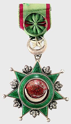 Nişanın rozet yıldızı her noktası arasındaki üç kısa gümüş ışınları ile koyu yeşil emaye yedi köşeli yıldız vardır. Orta madalyon yeşil emaye bandı ile çevrili, kırmızı emaye alanı ise altındır. Kırmızı orta kısmında yükseltilmiş altın hilal ve bir kaligrafik kitabede «Osmanlı Devleti'nin Hükümdarı, Allah'ın yön göstermesine dayanan Abdülaziz Han» yazmaktadır. Madalyonun gümüş olan arka yüzünde, silah taşıyan kupa ile birlikte, Osmanlı İmparatorluğu'nun kuruluş yılı H.699 yazmaktadır. Nişan yukarı bakan altın hilal ve yıldız tarafından askıya alınır. Birinci sınıfı 100 mm, ikinci sınıfı ise 90 mm çapındadır.