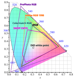 Renk uzayı belirli bir renk organizasyondur. Fiziksel aygıt profili ile birlikte, analog ve dijital temsiller renk tekrarlanabilir temsilleri sağlar. Belirli renkler NCS Sistemi, Adobe RGB veya sRGB olduğu gibi, fiziksel renk örnekleri bir dizi atanan ve bu Pantone koleksiyonu ile olduğu gibi adlar ya da numaralar atanmış karşılık gelen ya da matematiksel olarak yapılandırılmış olan bir renk uzayı, keyfi olabilir. Bir renk modeli yolu renkleri açıklayan soyut matematiksel model (örn RGB üçe veya CMYK dört kişilik) sayıların küpe olarak temsil edilebilir; Ancak, mutlak bir renk alanına hiçbir ilişkili eşleme fonksiyonu ile bir renk modeli renk yorumlama herhangi küresel anlaşılan sisteme hiçbir bağlantısı ile daha az ya da çok keyfi bir renk sistemidir. Bir renk modeli ve referans renk uzayı arasında belirli bir eşleme fonksiyonu ekleme referans renk alanı içinde bir gam olarak bilinen kesin bir "ayak izi", kurar ve belirli bir renk modeli için bu bir renk uzayı tanımlar. Örneğin, Adobe RGB ve sRGB RGB renk modeline dayalı iki farklı mutlak renk uzayları, her ikisi de. bir renk uzayı tanımlarken, her zamanki referans standardı, özellikle ortalama insan görebilirsiniz tüm renkleri kapsayacak şekilde tasarlanmıştır CIELAB veya CIEXYZ renk uzayları vardır.