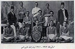 Selahattin Bey, Fenerbahçe’nin 1911-12 İstanbul Futbol Ligi’ni şampiyon tamamlayan kadrosunda. En altta oturanlardan sağdan ikinci kişi.
