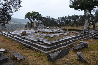 Kentin akropolü güneydeki dağın tepesindedir. Bu tepenin çevresi bir surla çevrilmiştir. Kuzeyinde, yamaç üzerindeki bir teras üzerinde şimdiki kara yolunun hemen altındaki, bir yazıtta imparator için yapılmış küçük bir tapınağın kalıntıları göze çarpar.