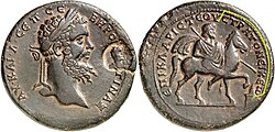 Stratonikeia antik kentinde darb edilmiş İmparator Septimus Severus'a ait sikke. Ön yüzde İmparator Septimus Severus portresi, arka tip Zeus Panamaros at sırtında, yanan sunağa yaklaşıyor, önünde sağdan sola antik kentin ismi CTPATONIKEIΩ-STRATONIKEO olarak darb edilmiştir.