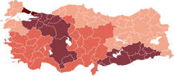 ![]() İllere göre haftalık vaka sayısı (19-25 Haziran 2021) (100 binde)