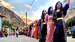 ![]() Hakkari'de kültürel kıyafetlerin giyildiği bir Kürt düğünü. | |