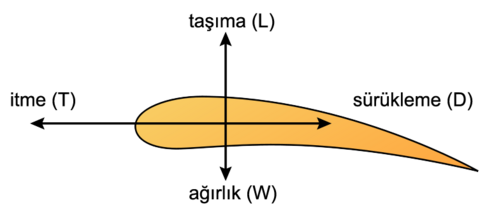 Taşıma kuvveti, kanat profili etrafındaki akımlar arasındaki basınç farkından ve kanat ucunda gerçekleşen hareket doğrultusuna dik sirkülasyondan ileri gelir.