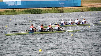 Takım hâlinde düzenlenen bir kürek müsabakasından görünüm.