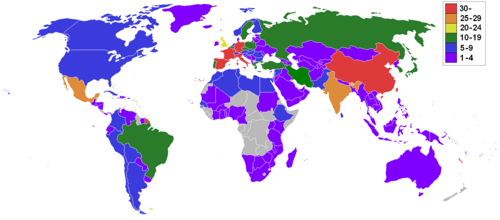- Turuncu: 20 ila 29 mirası olan ülkeler